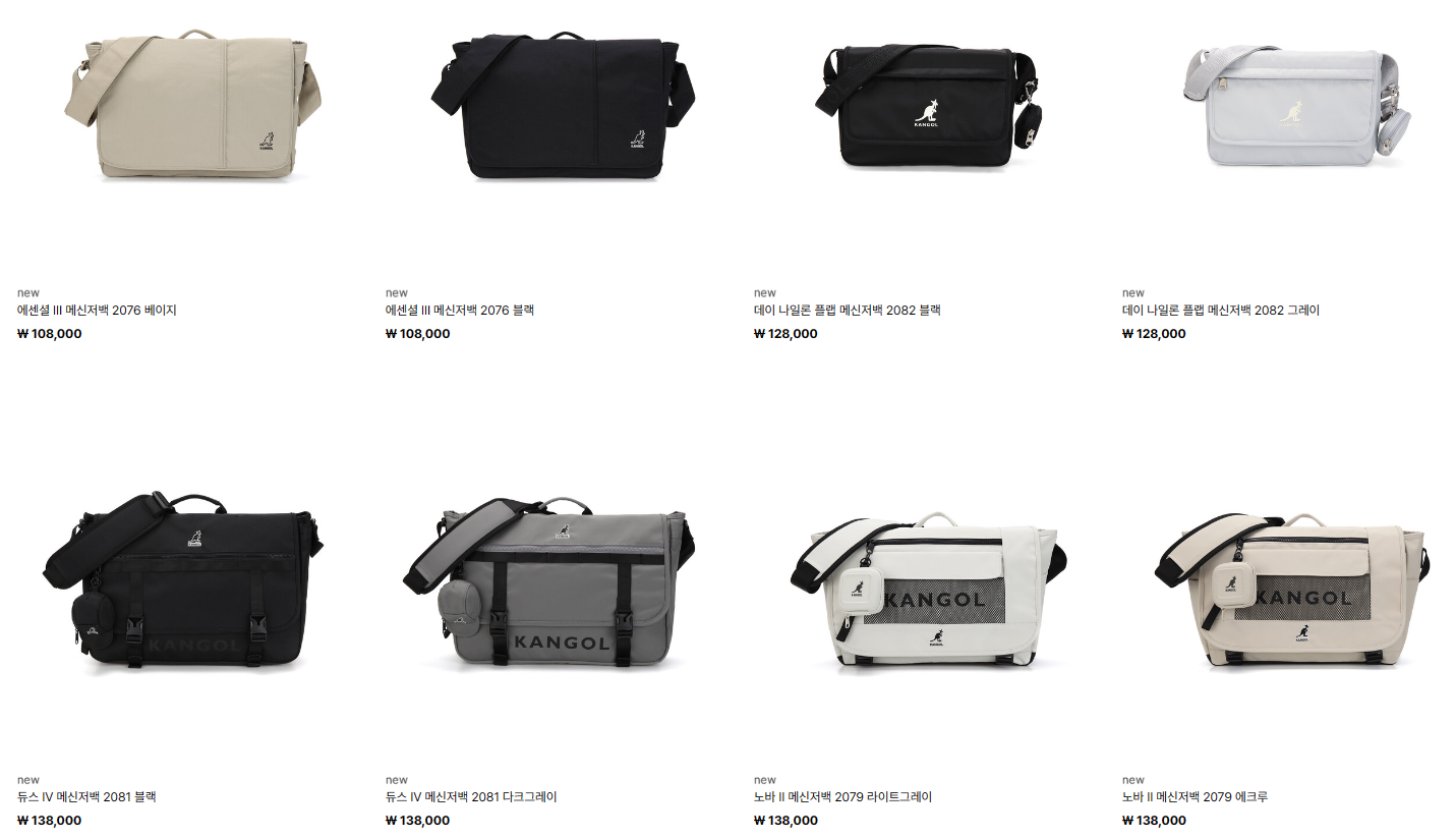 - 캉골 : 캉골은 오랜 역사를 가진 브랜드로 메신저백 또한 꾸준한 사랑을 받고 있습니다. 다양한 색상과 디자인이 있어 선택의 폭이 넓으며 키링 등 액세서리를 통해 자신만의 개성을 표현할 수 있습니다