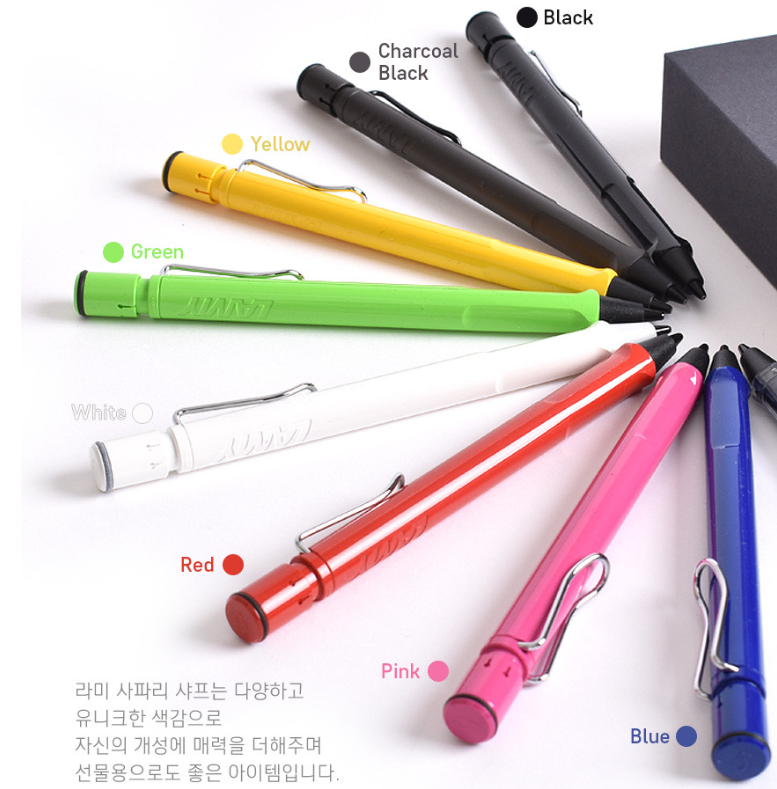 첫번째로 소개할 제품은 독일 프리미엄 브랜드 '라미 샤프'입니다. 감각적인 디자인과 트렌드한 컬러를 가진 샤프에 조각 각인으로 나만의 개성있는 샤프를 소장할 수 있는데요, 라미(Lamy)는 1930년 독일에 설립된 샤프, 만년필 등을 제조하는 필기구 회사인데요, 최고 수준 품질과 깔끔한 디자인으로 한국에도 오프라인 매장(교보문고 강남점, 광화문점, 센텀시티점 등)이 있는 브랜드랍니다.